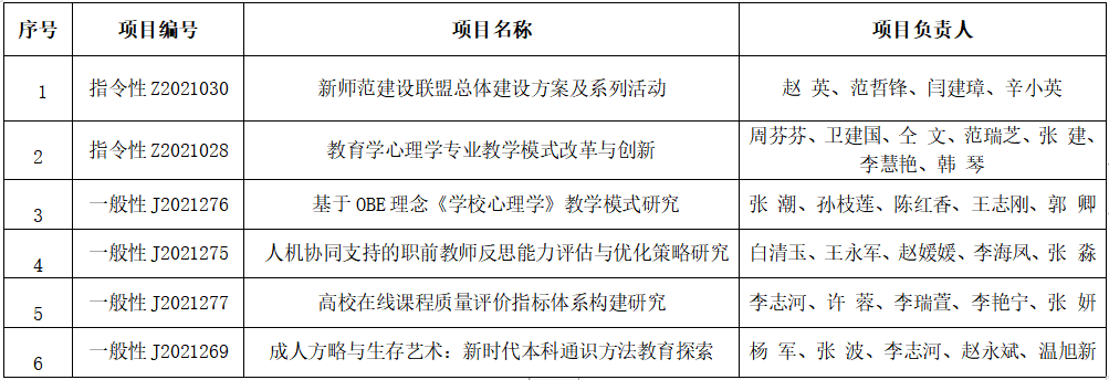2021年公司山西省高等学校教学改革项目立项