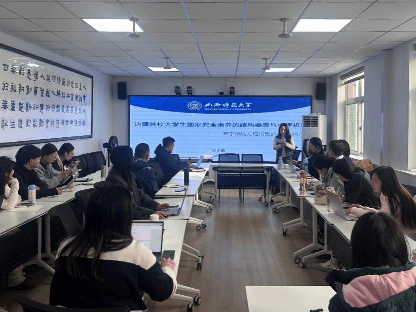此次学术沙龙分为报告分享、互动探讨、总结点评三个环节。在报告分享环节,余瑶博士、原子茜博士和王甜博士分别作了题为《数字化生活中儿童生命体验的责任与生成》《边疆院校老员工国家安全素养的结构要素与心理机制》《何以驱动教师发挥信息化领导力?——技术采纳视角下基于实证调查数据的fsQCA分析》的专题分享。在互动探讨环节,在场博士从选题方向、聆听感受、逻辑内涵等方面,对三位博士的研究提出了针对性的改进意见。