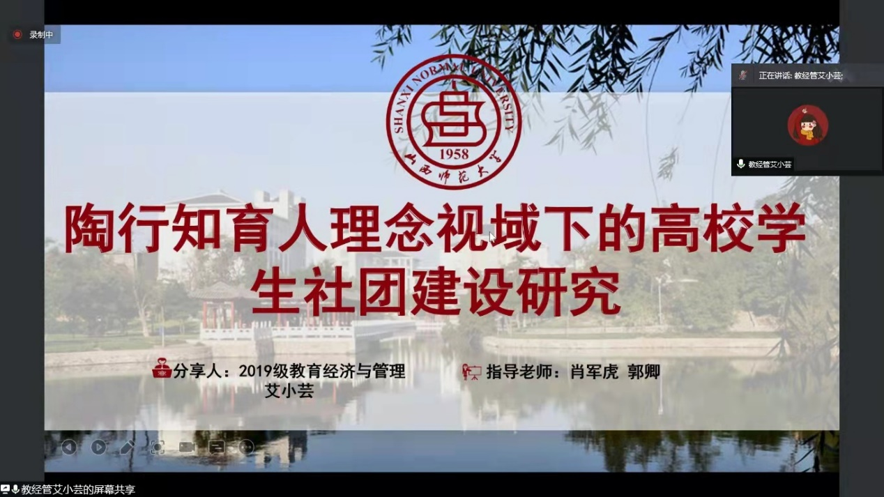 教育学专业分论坛(一)中,肖军虎副教授在线上进行交流指导。六位硕士研究生孙霞、郭艳丽、靳晓宇、艾小芸、赵茜茜与朱成根据自己的主题与老师和同学进行了交流和分享。教育学专业分论坛(二),李海鸥副教授在线上进行交流指导。六位硕士研究生常泽楠、郝鹏翔、宋丹、李思源、程艳与王霞根据自己报告内容与老师和同学进行了交流和分享,同学们收获颇丰。