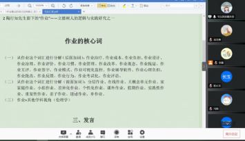 会议由李蕾同学主持,参会者就“双减”背景下中小员工作业相关文献进行了梳理和反思,并就作业的涵义、价值,以及作业设计、作业评价等问题进行了深入的探讨。
