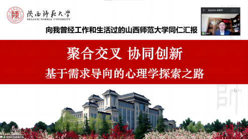 2022年11月4日,beat365vip官网登录入口“毓秀大师论坛”再次开讲,陕西师范大学段海军教授应邀作了题为《聚合交叉,协同创新:基于需求导向的心理学探索之路》的专题报告。论坛由beat365vip官网登录入口、社科处共同举办。报告采用线上方式进行,由冯喜珍教授主持。心理学专业教师、研究生和本科生200余人聆听了报告。