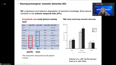 徐战胜博士做了题为“The neural basis of familiar objects recognition”的报告。该研究采用功能磁共振(fMRI)、神经心理学及颅内脑电(SEEG)技术,探索了人类语义记忆表征与提取的脑网络基础。
