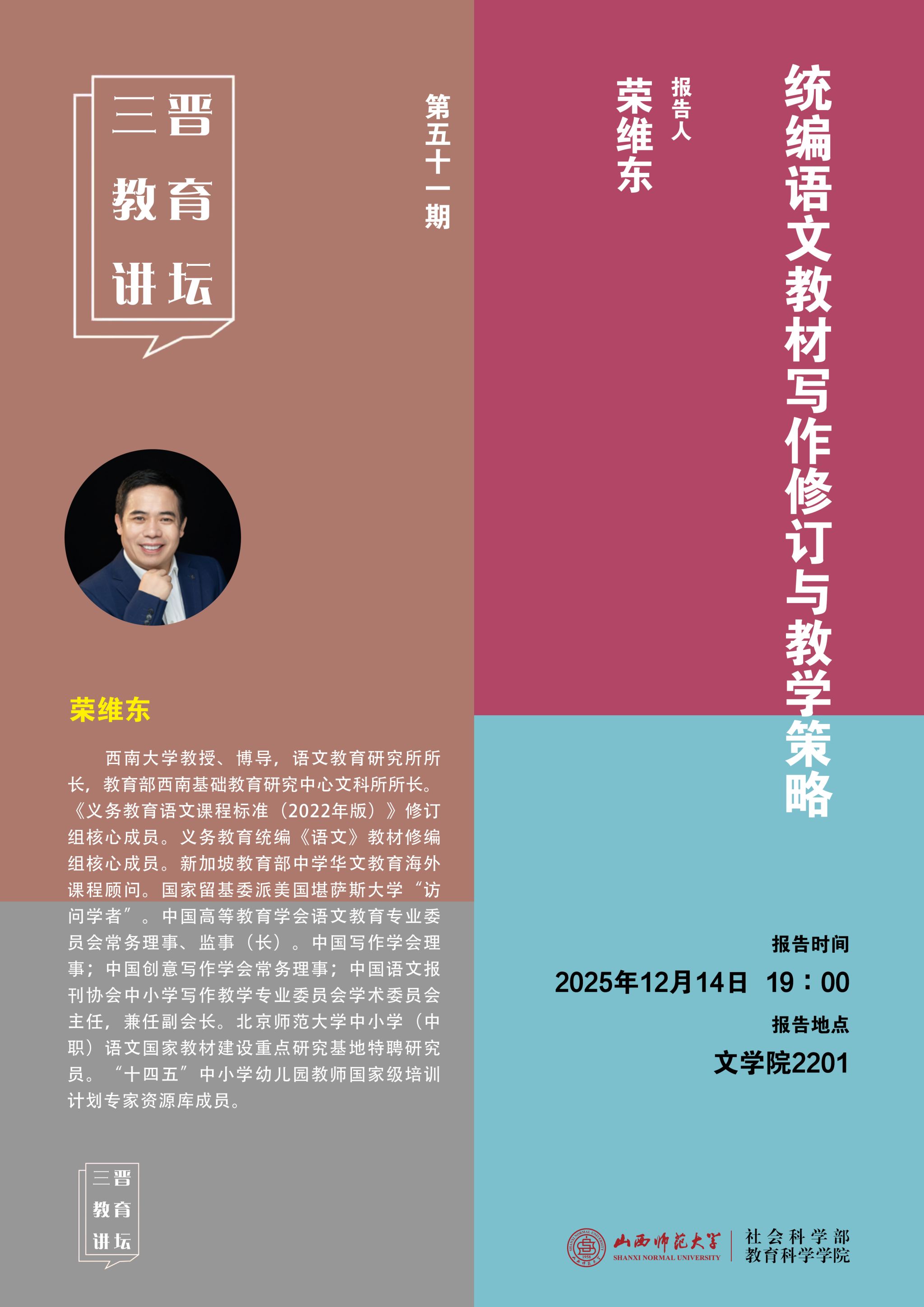 【预告】西南大学教授荣维东应邀来公司作学术报告