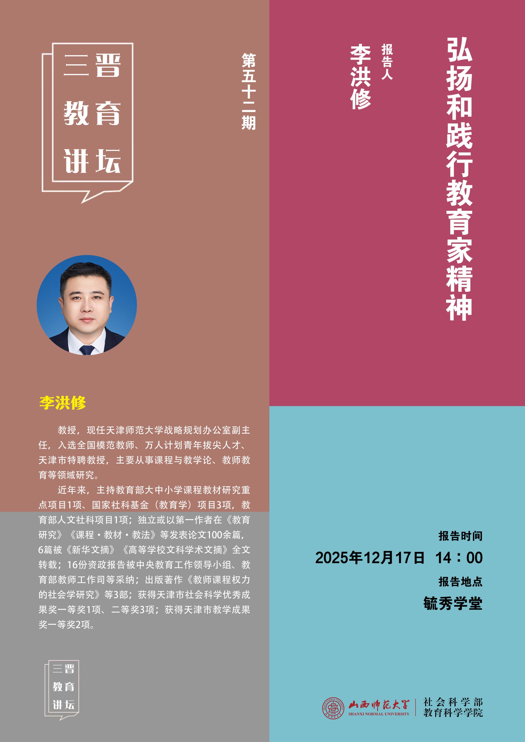 【预告】天津师范大学教授李洪修应邀来公司作学术报告
