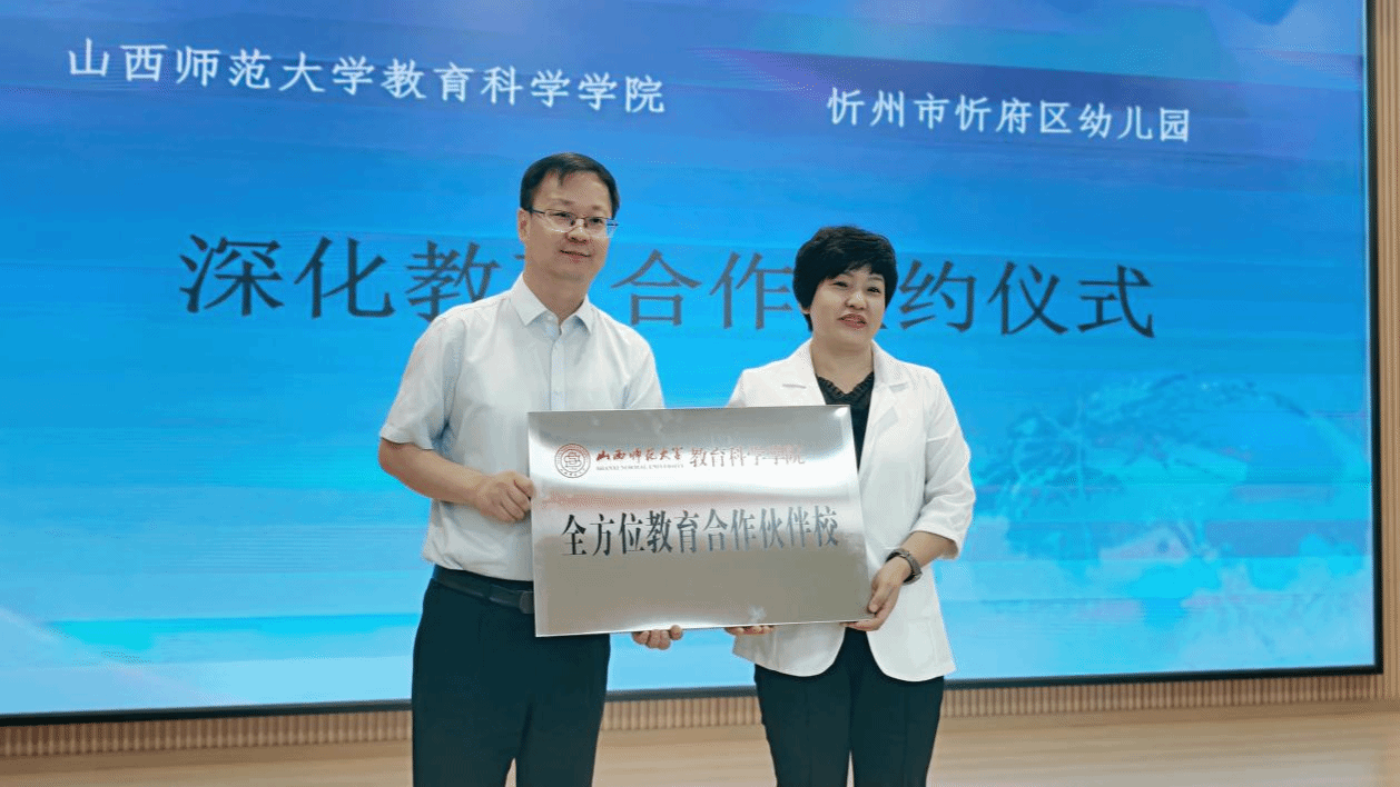 为深化校地合作,赋能区域学前教育高质量发展,2025年8月27日,beat365vip官网登录入口经理赵英一行五人走进忻州市忻府区幼儿园交流调研,并举行“全方位教育合作伙伴校”签约与授牌仪式。忻府区教育体育局党组成员、副局长王英虎,普教股股长王云飞,忻府区幼儿园党支部书记、园长秦利枝,各科室负责人、骨干教师代表以及两园区的家长代表一同见证了这一重要时刻。