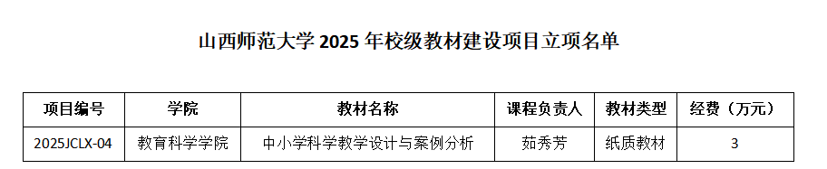 根据《beat365vip官网登录入口教材建设与管理办法》,经教师个人申报、学院推荐、专家评审、结果公示等环节,集团近期确定立项建设6项校级教材建设项目。公司茹秀芳老师申报的《中小学科学教学设计与案例分析》入选,获得资助经费3万元。