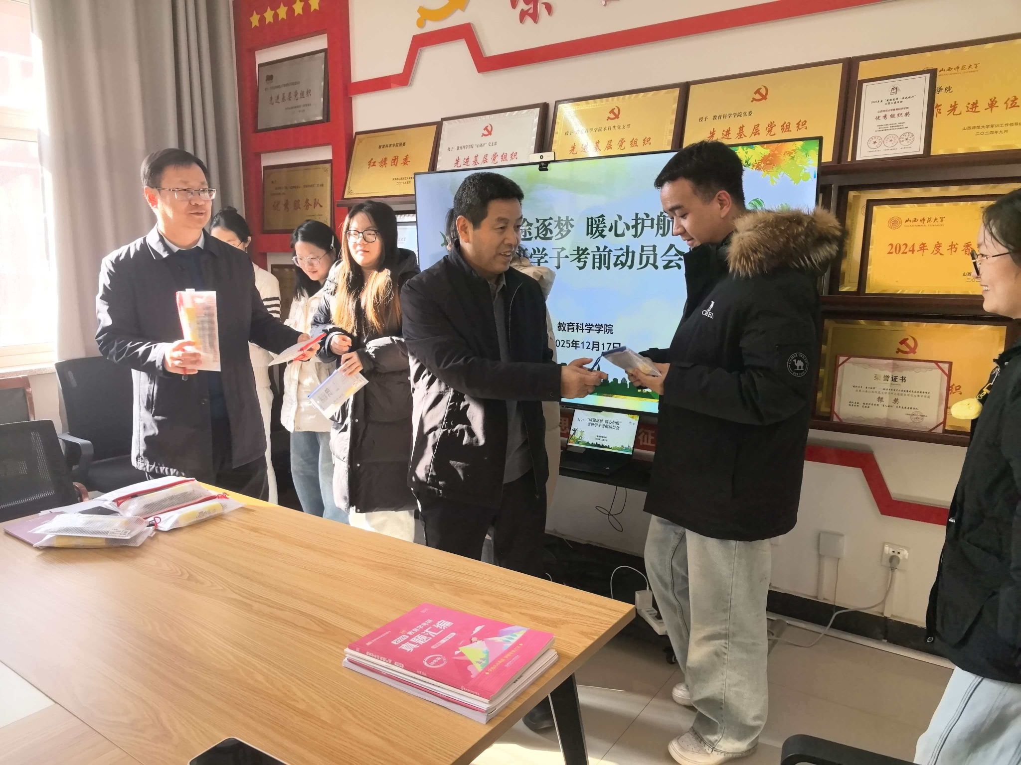 活动现场,院领导为全体考研学子送上了学院精心准备的考研文具礼包,这份暖心礼物让学子们深切感受到学院的关怀与鼓励。同学们纷纷表示,将带着学院的期许,全力以赴,沉着应考,力争交出满意答卷。