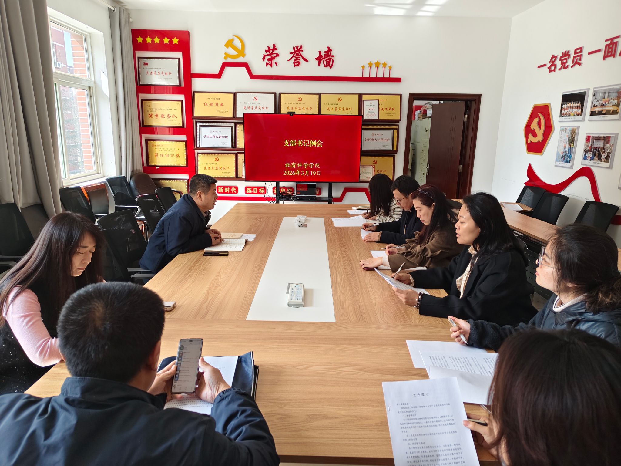 会议安排了近期重点任务。各党支部要深化理论学习,巩固拓展学习成效,切实把学习成果转化为干事创业的实际行动,把求真务实、担当作为贯穿工作全过程;要深入推进样板支部、“双带头人” 教师党支部书记工作室建设,细化标准、时间节点与责任分工,强化示范引领,以点带面提升支部标准化规范化水平;要常态化开展意识形态工作研判,精准掌握师生思想动态,从严抓实阵地管理风险防控,压紧压实意识形态工作责任制,坚决筑牢意识形态安全防线;要从严抓好教师党员发展工作,严把政治关、质量关,优化党员队伍结构,强化青年教师政治吸纳与系统培养;要纵深推进课程思政建设,推动思政元素与专业教学深度融合,切实提升立德树人育人实效。