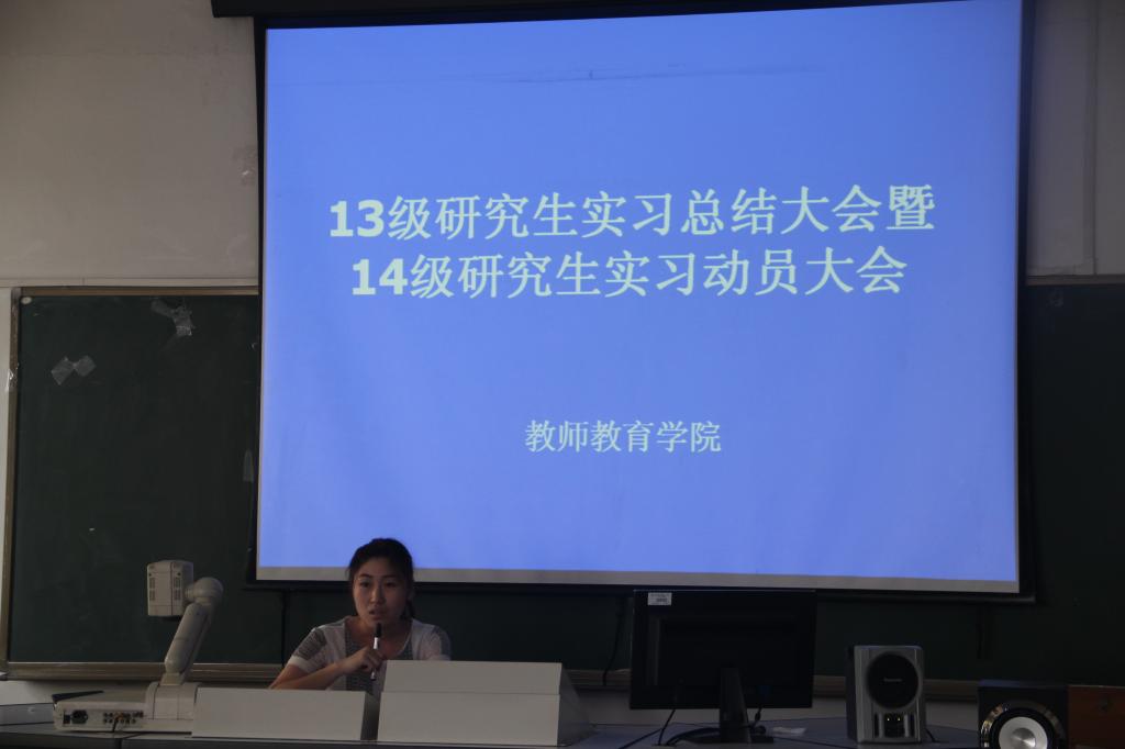 7月5日上午和下午,教师教育学院在07408举办了2013级研究生实习总结大会暨2014级研究生实习动员大会。教师教育学院经理董新良、副经理张潮、部分员工导师、全体2013级研究生及2014级研究生参加了本次会议,