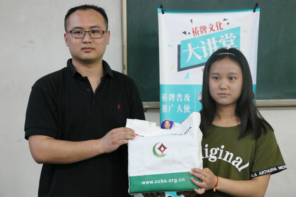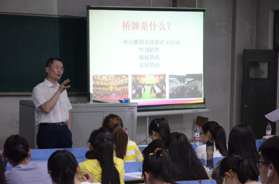 桥牌文化大讲堂是由中国桥牌协会、中国青年报社、中国高校传媒联盟共同举办的一项旨在高校宣传桥牌文化,普及桥牌知识,培养老员工健康文明生活方式的活动。在本次大讲堂中,新睿桥牌创始人、北京得实达康系统集成有限公司董事长刘玉璋等桥牌热爱者莅临现场,结合自己的亲身经历与同学们亲切交流学习桥牌运动的心得,中国桥牌黑桃中级大师张宁则通过简化桥牌教学环节,为同学们讲解了桥牌的基础知识及打法。与此同时,山西桥协为beat365vip官网登录入口桥牌活动站授牌并赠送了桥牌用具和有关资料。