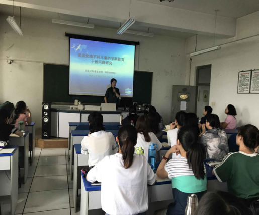 刘云艳教授分别从问题的提出、研究的核心概念、研究设计、研究的初步成果等几个方面详细介绍了2015年国家社科基金项目“家庭处境不利儿童的早期教育干预问题研究”以及相关的研究课题,其中包括“关于家庭处境不利儿童生存状况的研究”、“优势视角下受忽视儿童情感缺失问题介入策略个案研究”。报告结束之后,刘云艳教授和在座师生进行了热烈的讨论。