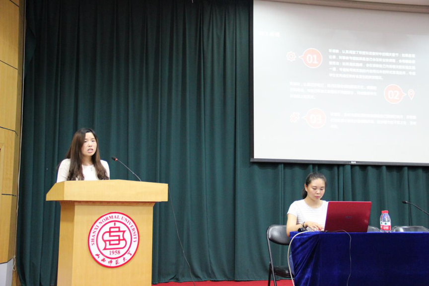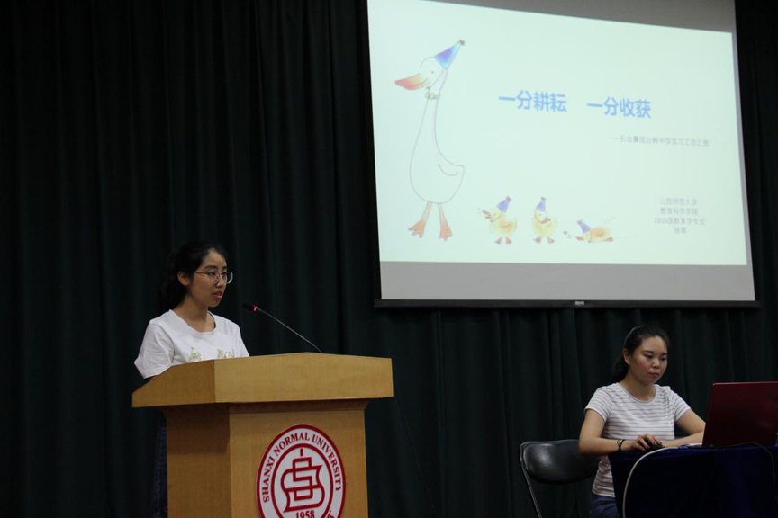 | 2015级硕士研究生教育学代表徐蓉同学作实习总结发言 |
