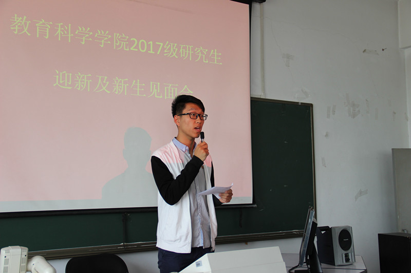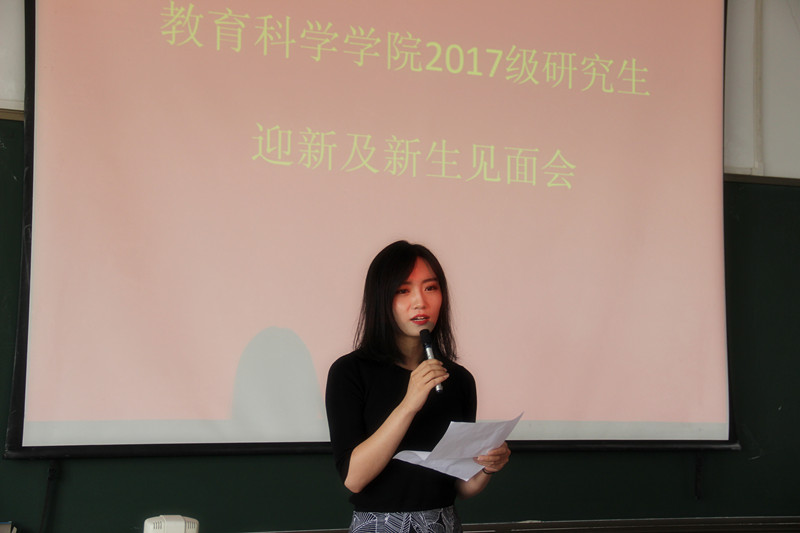 公司2015级教育技术学专业研究生代表师芳同学,2017级心理学专业新生代表安彦名同学进行发言。“用梦想支撑生活;用读书丰富内涵;在实践中成长、在思考中创新”师芳同学如是说,为新生提供了宝贵的成长经验。新生代表安彦名怀揣着对学术探究的热情,充满信心,希望主动去学习和发现知识,积极探索问题,刻苦钻研,立志做一名优秀的研究生。