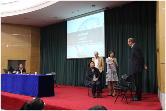 10月19日上午10:30,国际著名心路治疗学家、美国心路治疗协会负责人大卫·施沃伦(David A.Schwerin)博士,荷兰心理学家扬·罗洛夫(Jan Roelofs)博士,美国过程研究中心中国部主任王治河博士,霍普金斯大学医学院武沨博士所组成的心路治疗团队应邀为公司师生开展了“心路治疗”心理工作坊。