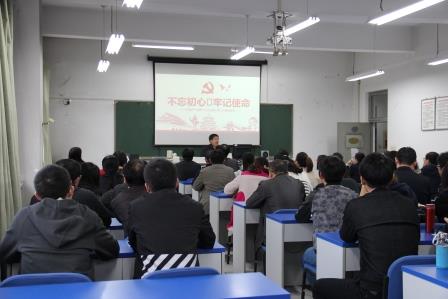 赵跃先教授以“不忘初心、牢记使命”为题,紧紧围绕习近平新时代中国特色社会主义思想这个主线,从党的十九大的鲜明主题,习近平新时代中国特色社会主义思想的丰富内涵,党的十八大以来党和国家事业发生的历史性变革,中国特色社会主义进入新时代的重大意义,我国社会主要矛盾变化的深远影响,“两个一百年”奋斗目标,坚定不移全面从严治党的重大部署等七个方面对党的十九大报告进行了全面准确、系统深入的梳理解读。报告思路清晰、内容详实、重点突出、语言生动,对学院师生深刻领会十九大精神起到了很好的引导作用。