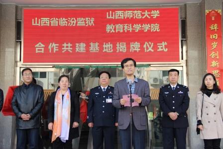 李万中书记发表了讲话,基地的成立,为高校和监狱管理部门共创“攻心治本”搭建了互通共建新平台,为大家凝聚共识,增进互信、促进合作、深化友谊提供了开拓共赢新思路。学院在基地建设过程中,努力做好三个服务:一、服务监狱管理,切实提高服刑人员教育改造质量;二、服务干警幸福,没有身心健康的干警,就难以切实保证罪犯改造质量的提高;三、服务师生发展。