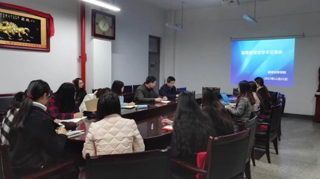 2017年11月21日晚上19:00-21:30,beat365vip官网登录入口高等教育学研究生学术交流会在田家炳教育书院五层学院会议室举行,会议由教师教育学院经理、高等教育学学科学位点负责人闫建璋教授主持,beat365vip官网登录入口王瑞朋老师与高等教育学专业全体研究生参加了此次会议。