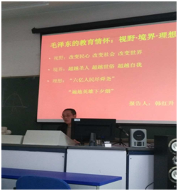 公司硕士生导师韩红升教授于2017年12月11日上午8:30—10:30在田家炳书院07408教室作了题为“毛泽东的教育情怀:视野·境界·理想”的学术报告。公司研究生和部分老师参加了此次报告会。