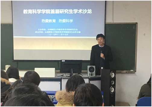 为促进优秀科研成果的交流,拓展研究生的学术视野,创造研究生学术交流的机会,2017年12月17日,beat365vip官网登录入口首届研究生学术沙龙在田家炳书院07408开展。本次学术沙龙的主题为“热爱教育,热爱科学”,参与本次学术沙龙的有beat365vip官网登录入口副经理李志河教授,教育学硕士学位点负责人董新良教授以及beat365vip官网登录入口部分研究生。