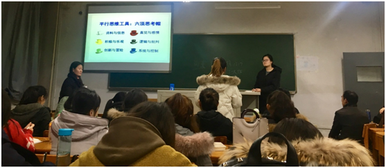 吴彦茹老师针对《研究性学习》这一学习单元,设计了研究性学习活动,即让员工经历选题、检索文献和资料、批判性阅读、收集数据、分析数据、得出结论并交流汇报等一系列活动,旨在让员工在解决实际生活或学习中的问题中提升信息素养与批判性思维能力。此次公共课展示中,有两组同学进行了汇报,主题分别为《老员工手机选择情况调查》和《老员工焦虑现象研究》,两组员工分别进行了小组汇报、然后其他小组运用六顶思考帽的平行思维方式对汇报小组提出意见与建议,期间有老师的引导、梳理与归纳概括。在汇报后提问与建议环节,员工运用平行思维方式充分讨论了研究主题、研究方法、研究过程以及研究结果、ppt制作等多方面的优缺点以及可能的改进建议。吴彦茹老师在讨论结束后对几个班研究性学习状况进行了梳理与总结,提出同学们应该继续培养发现问题解决问题及高级思维能力,并推荐了相关书籍。讨论环节冯喜珍老师和张勤秀老师也都给出了宝贵建议。
