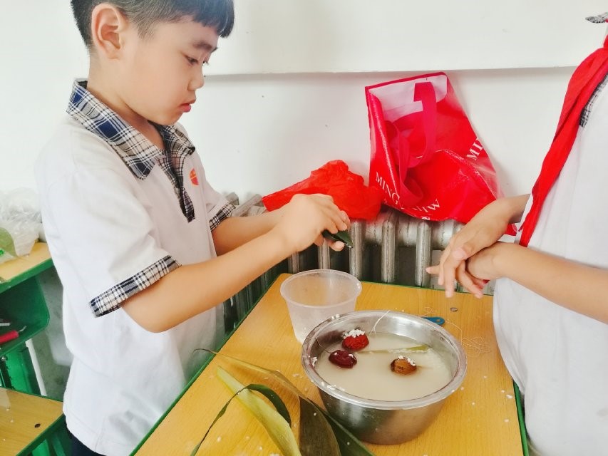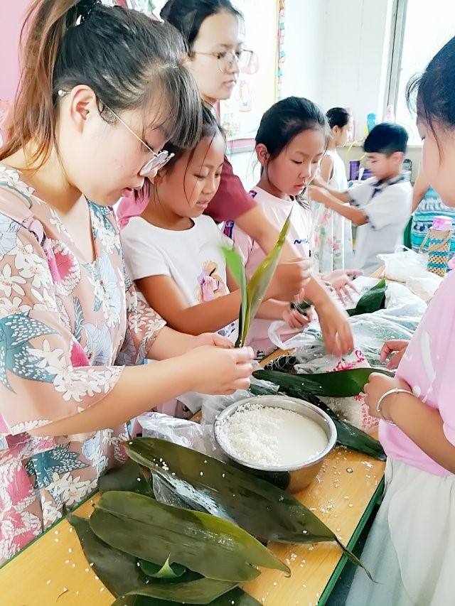 活动开始,先通过讲解有关端午节的来历、风俗以及屈原的故事,向大家广泛宣传中华传统文化,让同学们感受中国节日的魅力,增加对中国传统文化的了解与认同;其次,组织同学们在鸡蛋上画上自己想画的图、教包粽子,然后将包好的粽子煮熟,大家一起吃香甜的粽子。教员工缠线粽,自己动手缠出独特的线粽,这些都促进了师生之间的情谊。最后,同学们朗读有关端午的古诗词,现场气氛十分活跃。