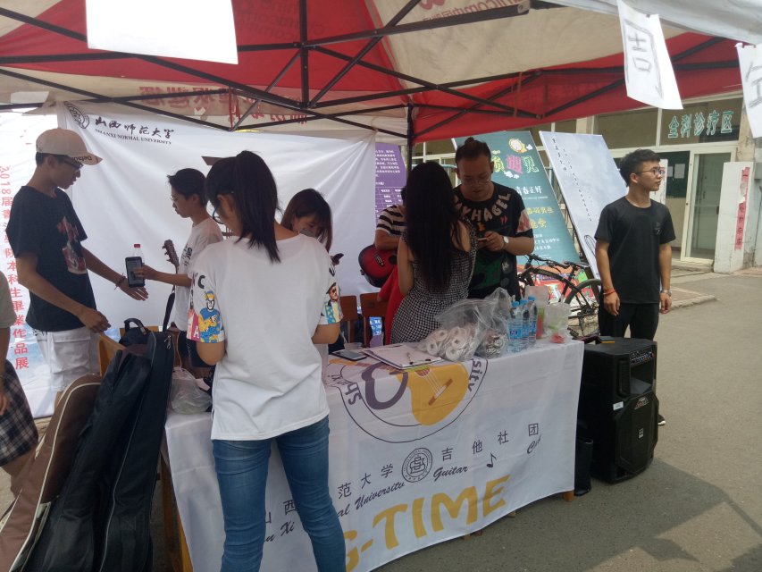 活动期间,吉他社成员为大家准备了提前订做的吉他社文化纪念品――印有吉他社字样的徽章和手环。同时,吉他社成员通过表演来庆祝吉他社成立一周年,并积极向大家介绍吉他的用处和功能。