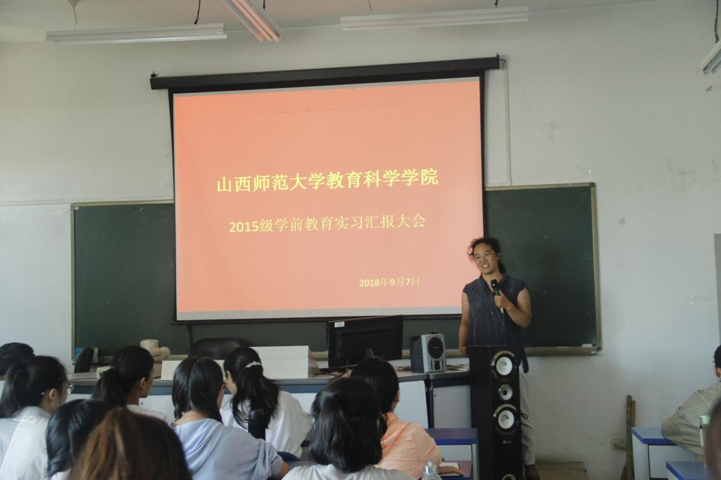 9月7日上午八点半,beat365vip官网登录入口15级学前教育专业的实习汇报总结大会在07408室如期举行。会议由该专业的洪芳婷同学主持。副经理韩琴、学前教育系主任席小莉,学前教育专业教师范瑞芝、曾庆秦出席了本次会议,15级学前教育专业的同学、16级的全体员工参加了会议。