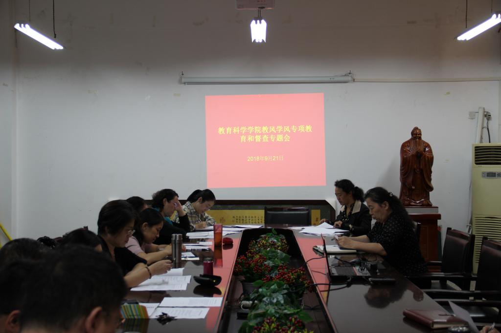 2018年9月21日下午,公司在田家炳书院07509室专门召开了教风学风专项教育和督查会议。本次会议旨在进一步落实本科教学审核评估工作,加强学校教风学风建设,全面整顿本科公司产品秩序,部署公司教风学风督查工作。学院领导班子、院教学指导委员、各系主任、各党支部书记参加本次会议。会议由韩琴副经理主持。