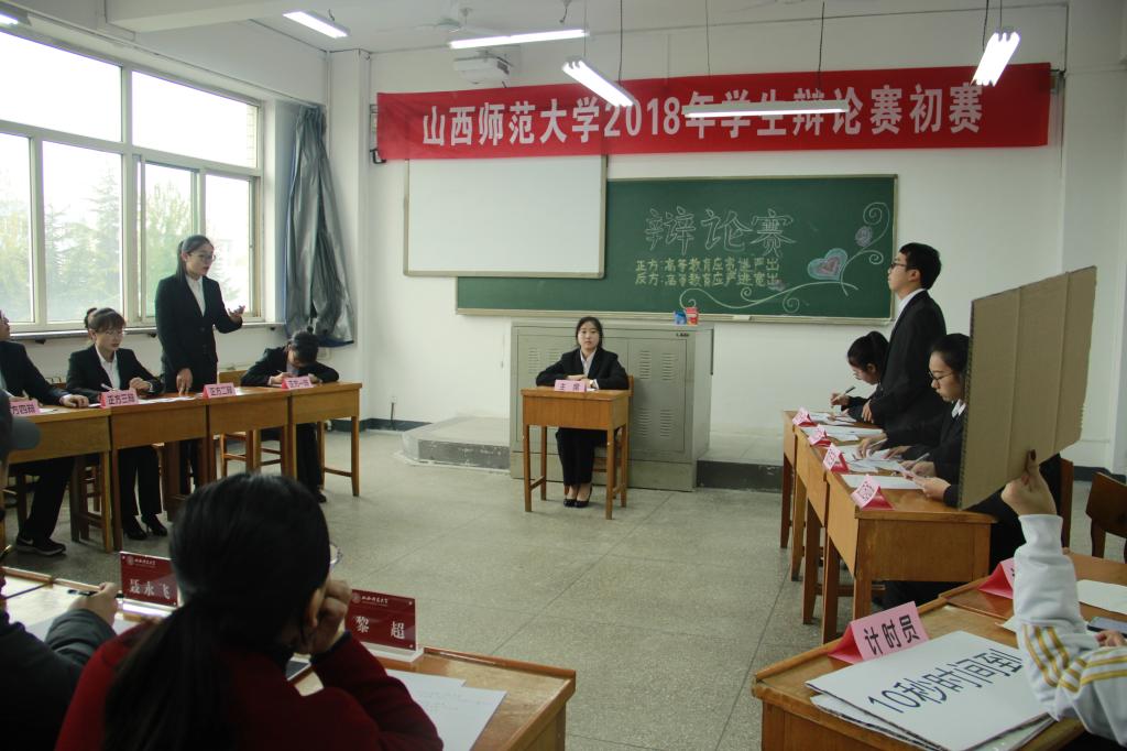 初赛以“高等教育应严进宽出vs高等教育应宽进严出”的辩题展开。比赛过程中,辩手们经过开篇立论、攻辩、自由答辩、总结陈词等精彩辩论环节,赢得场下观众阵阵掌声。公司的辩手更是妙语连珠、口齿伶俐,得到在场人员的称赞与认可。评委老师们认真记录,对辩手的精彩表现给予了指导和点评。最终历史学院、教师教育学院、物信学院、化材学院、经管学院、政法学院、食品科学学院、戏剧学院、传媒学院、生命科学学院代表队取得了两两比拼的胜利。
