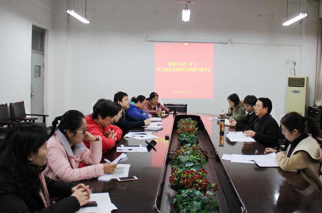 11月27日下午,公司党委中心组(扩大)在学院会议室召开学习会,专题学习新时代教师行为准则。院领导、公司党委委员、各支部书记和各系主任参加学习。公司党委书记吴文国主持会议。