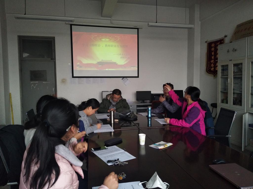 心理学专业教工党支部于11月28日下午四点在心理系办公室举行党日活动,学习《榜样3》精神以及学习新时代高校教师职业行为准则。