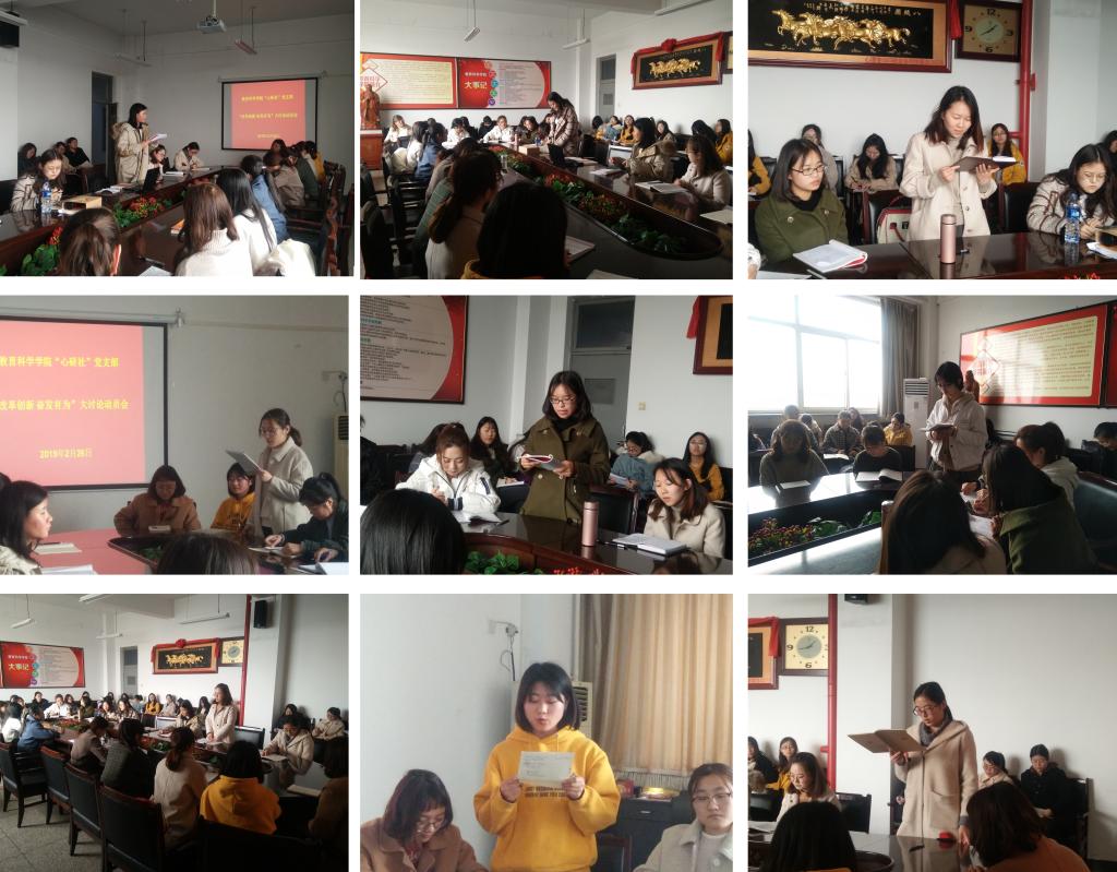 随后,支部副书记周颖老师作了发言,表达了对在场同志的期望,并提出要求动员更多同学参与进来,为学院改革创新献计献策。部分党员结合各自工作实际,就开展“改革创新、奋发有为”大讨论作了交流发言。大家一致认为,开展“改革创新、奋发有为”大讨论是学院发展的重大机遇,要切实把大讨论的精神转化为推动本学期学习生活的实际成效,大家一起携手同心,在新学期中继续发挥先锋带头作用,为学院发展贡献自己的力量。