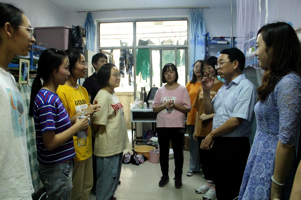 在7日下午,学院领导本着“以生为本”的原则走访了新生宿舍。公司党委书记吴文国、公司党委副书记高霞、院团委书记宁志恒、各班辅导员及团委员工会代表、党员一同前往新生宿舍看望新生。