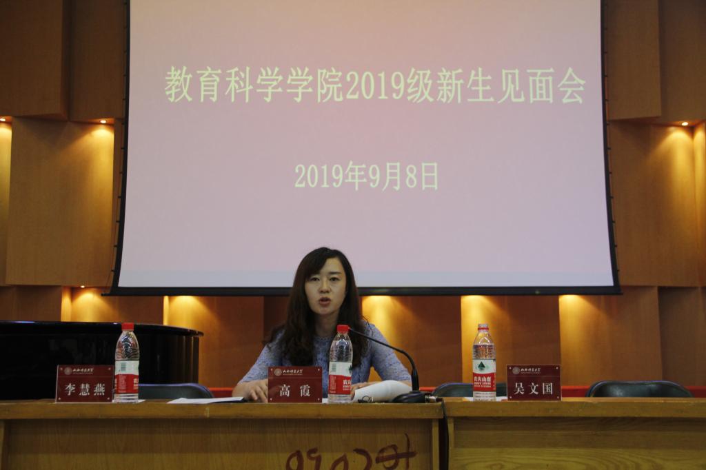 9月8日下午,公司在音乐厅举办了2019级本科生新生见面会。公司党委书记吴文国、党委副书记高霞、副经理李志河以及各系主任、全体行政人员、新生辅导员、员工会主席团成员参加了本次见面会。会议由高霞主持。