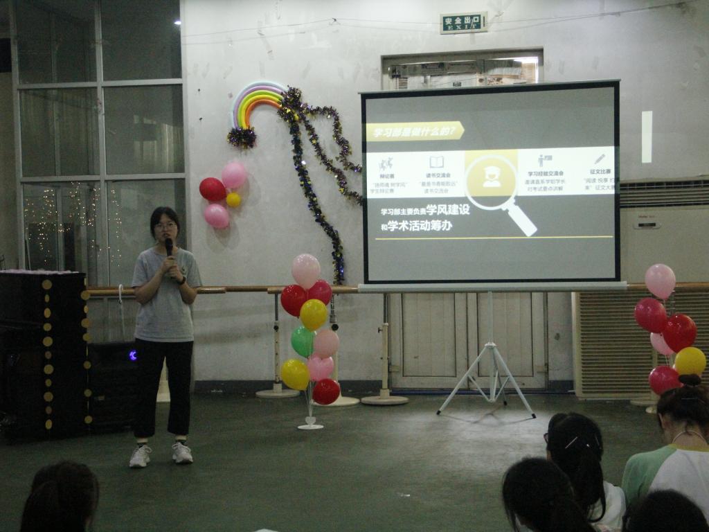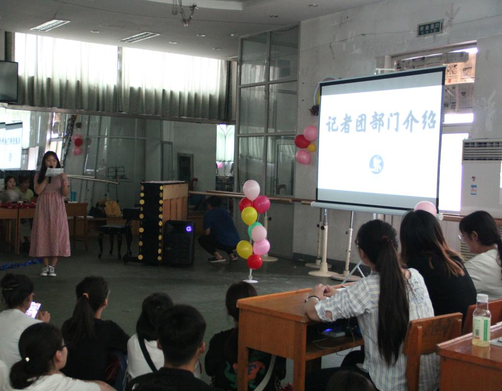 在主持人对团委员工会进行简短介绍之后,各部门、各社团负责人依次通过PPT或视频的形式进行展示,向大家介绍了部门职责、日常活动、纳新要求等。期间丰富多彩的才艺展示将纳新大会的气氛推向了高潮。