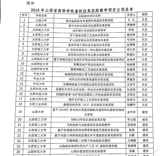 9月4日,省教育厅公布了《山西省高等学校虚拟仿真实验教学项目立项名单》(晋教高[2019]18号),公司张潮教授主持的“心理沙盘虚拟仿真实验教学项目”成功获批山西省示范性虚拟仿真实验教学项目省级立项。