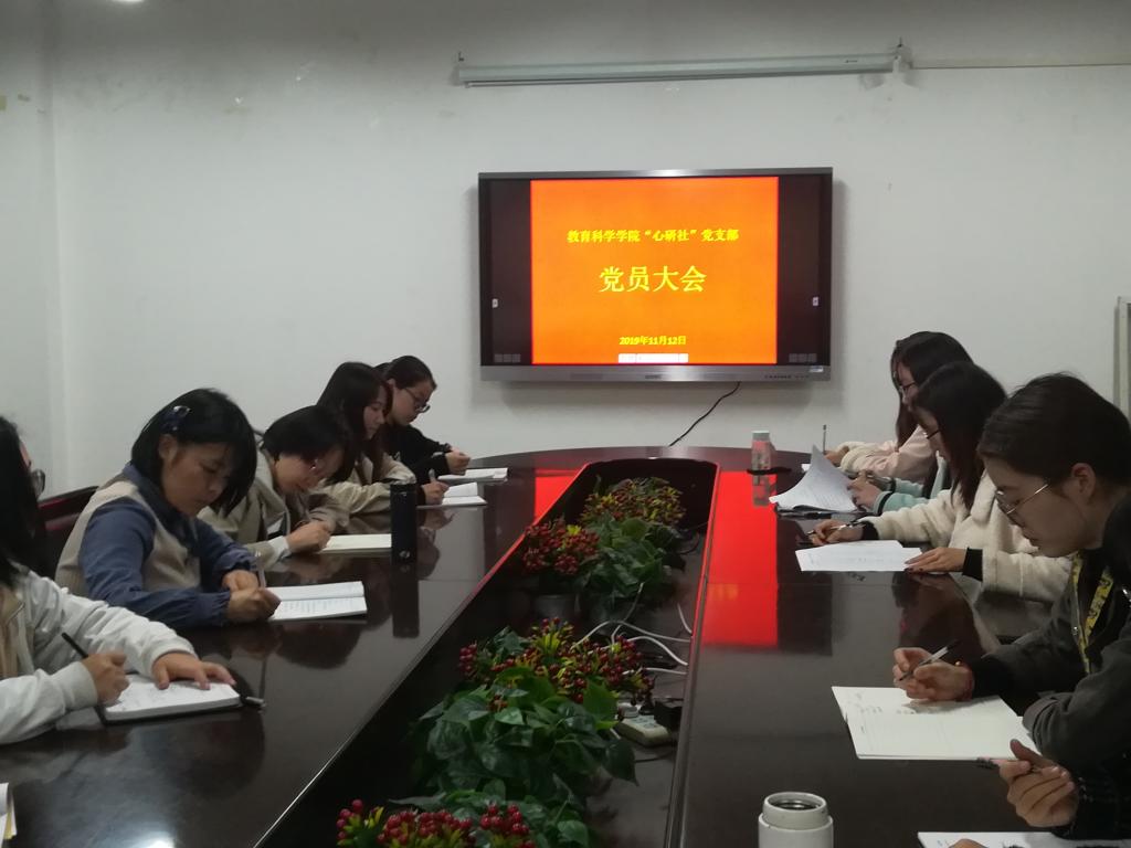 11月12日下午,公司“心研社”党支部在田家炳书院07509会议室召开党员大会,会议由“心研社”党支部副书记周颖主持,全体在公司党员参加。