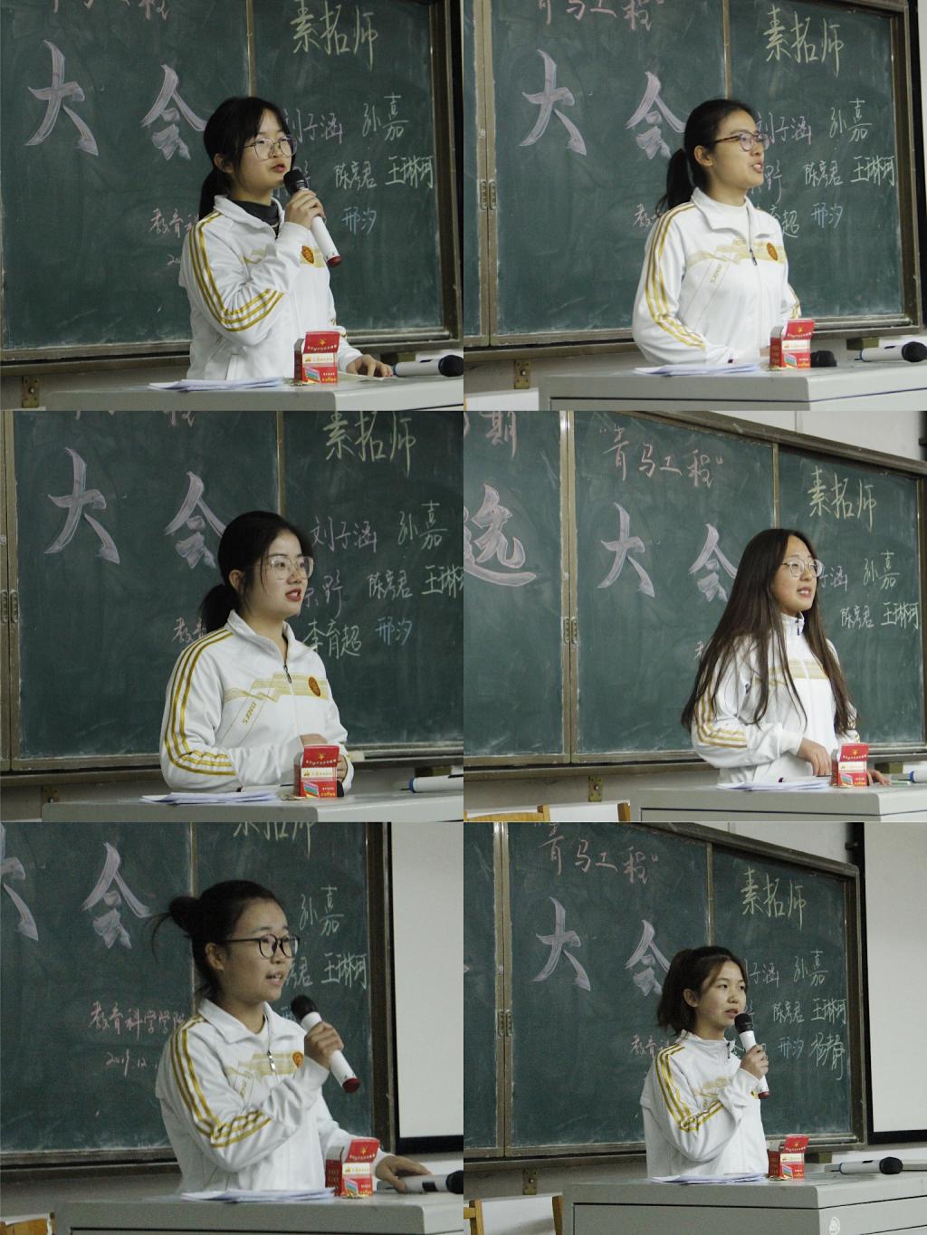 大会伊始,主持人介绍了本次大会目的与会议流程。评选分两个环节。在第一环节中,素拓师和引导员依次上台发言,发表对此次青马工程的感想并为自己进行拉票,精彩的讲话赢得了同学们的热烈掌声。大会第二环节,由青马成员对所有素拓师及引导员进行无实名制投票,评选出了此次青马工程的优秀素拓师与引导员。