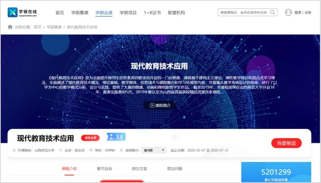《现代教育技术应用》是beat365vip官网登录入口李志河教授作为负责人,山西省首批认定的网络精品资源共享课程,本学期在“学银在线”慕课平台上如期进行课程组织、管理和教学。