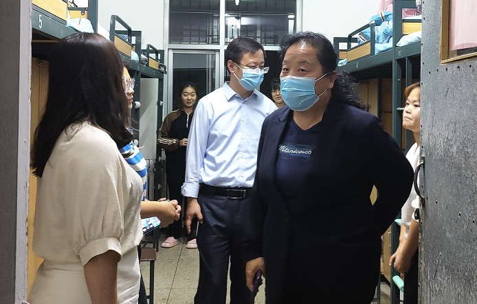 宿舍走访中,院领导详细地询问了新生们的生活习惯、环境适应情况等,要求同学们服从学校疫情防控各项规定,鼓励大家调整好自己的状态,尽快适应老员工活。