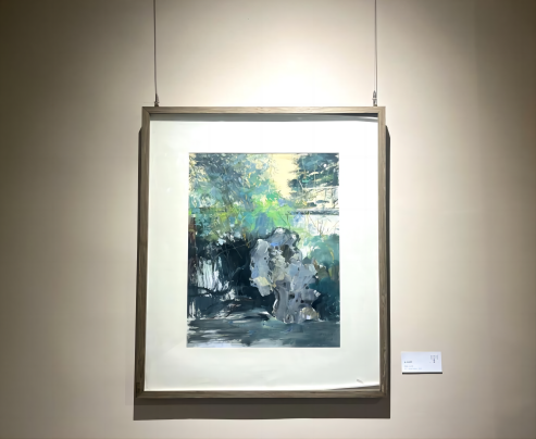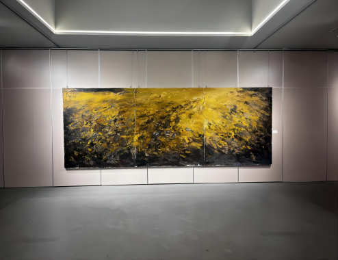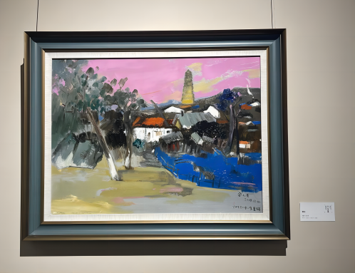 美术馆内,金小民介绍了他创作的心路历程。从一进门的题字,“今年的冬天不是很冷..”把我们慢慢带入一个艺术的殿堂。一幅幅画作凝练着他的情和意,他说‘绘画者是以笔说话,以画说话’的。创作者使用画笔感受着当下社会的沧桑变化。《疫情之下》简单的两根油条,不仅传达出一种生活气息,更体现出一种疫情防控期间积极乐观生活的心态。《文人驻梦》园林中的美景,白墙黑瓦、绿竹、太湖石。展厅中长达六米、高两米的大型画作《黄河黄河》黄河母亲的磅礴气势在展厅中蔓延,画中的几艘皮筏显得那么渺小,但又那么有力量感,“蜉蝣撼树”给人一种心灵的冲击。从写实派到印象派、从古典到近现代,纵横交错的艺术历史,金小民经理娓娓道来。类型多样的作品无处不体现他作为一名创作者,有温度、有深度的思考。