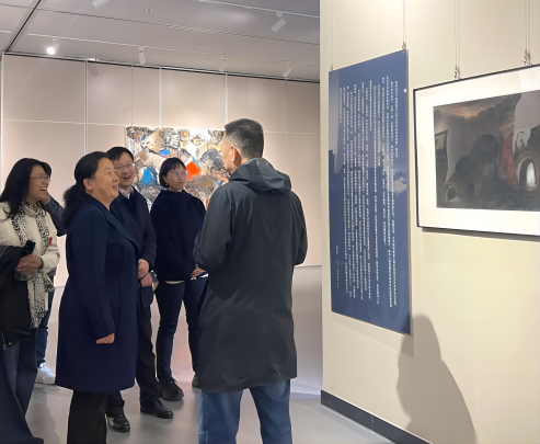 为促进美育工作新发展,切实提高公司师生美育欣赏水平。11月25日上午,公司党委书记赵英、经理张潮以及学院在校部分教职工、心理系研究生参观了“印心铸魂”美术画展展览,有幸邀请美术学院经理金小民讲解他的创作过程。