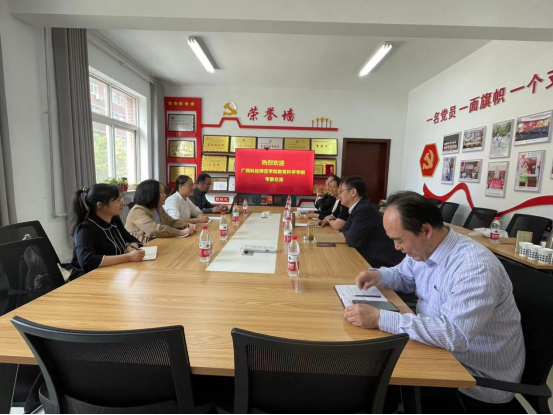 会上,赵英书记和张潮经理代表学院对广西科技师范学院的来访表示了欢迎。李慧燕主任、郑晓俊主任、张睆主任和范瑞芝主任分别介绍了各专业建设、教师队伍、人才培养情况、公司产品实验实训基地等内容,并与广西科技师范学院的老师们进行了深入且充分的讨论交流。