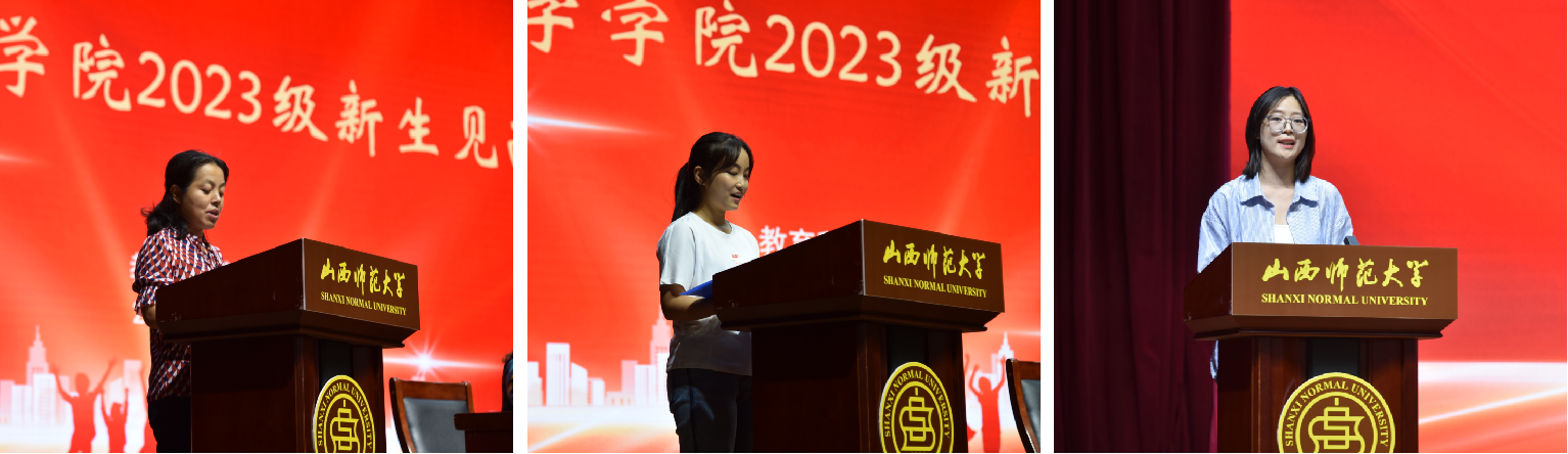 教师代表李高峰从感恩师大、敬畏职业、珍惜舍友三个方面出发,教育引导同学们珍惜当下,踔厉奋发。新生代表心理学专业本科生韩玥阳表示在大学期间要做到独立自主、严于律己、互帮互助。教育技术学研究生冯超然表示要主动学习和思考,磨练品行和意志,做好迎难而上的准备。