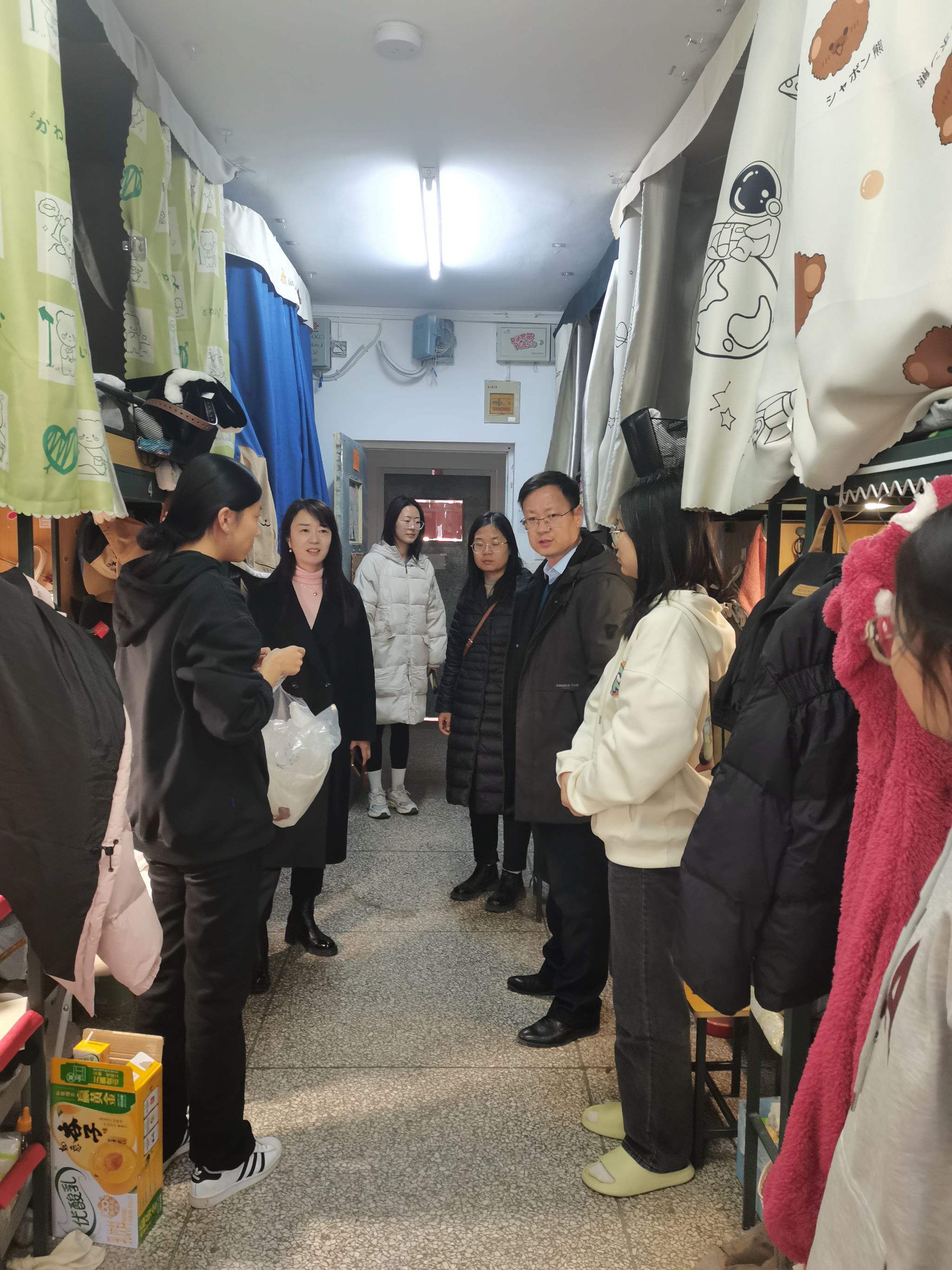 赵英一行详细查看了实验室、机房的消防设施和公共设备状况,深入员工宿舍重点检查用电安全、卫生环境和宿舍硬件设施情况,排查可能发生的安全问题隐患。针对检查发现的问题,院领导现场提出整改意见,同时面对面了解、调研、解决员工的生活困难,回应员工关切。调研中,院领导叮嘱同学们,安全无小事,要进一步提高安全防范意识,树牢防火防盗、安全用电、防诈骗意识,努力营造安全、健康、舒适、文明的学习和生活环境,筑牢学院安全防线。