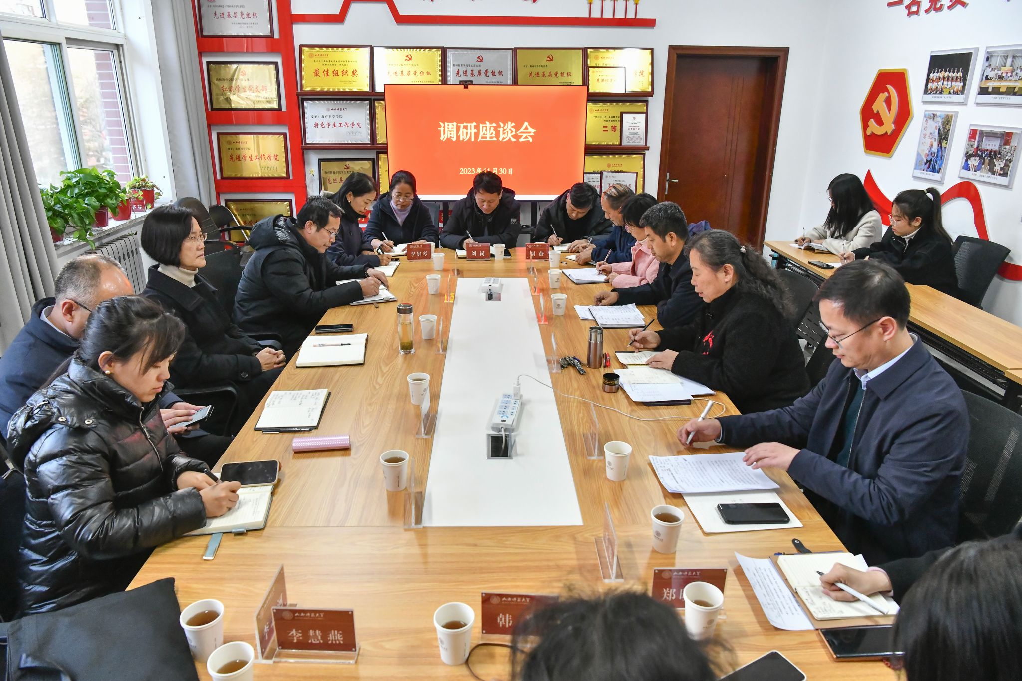 董事长办公室、教师教育学院、教育科学研究院相关负责同志参加了调研座谈。(来源:校办 饶二保/摄)