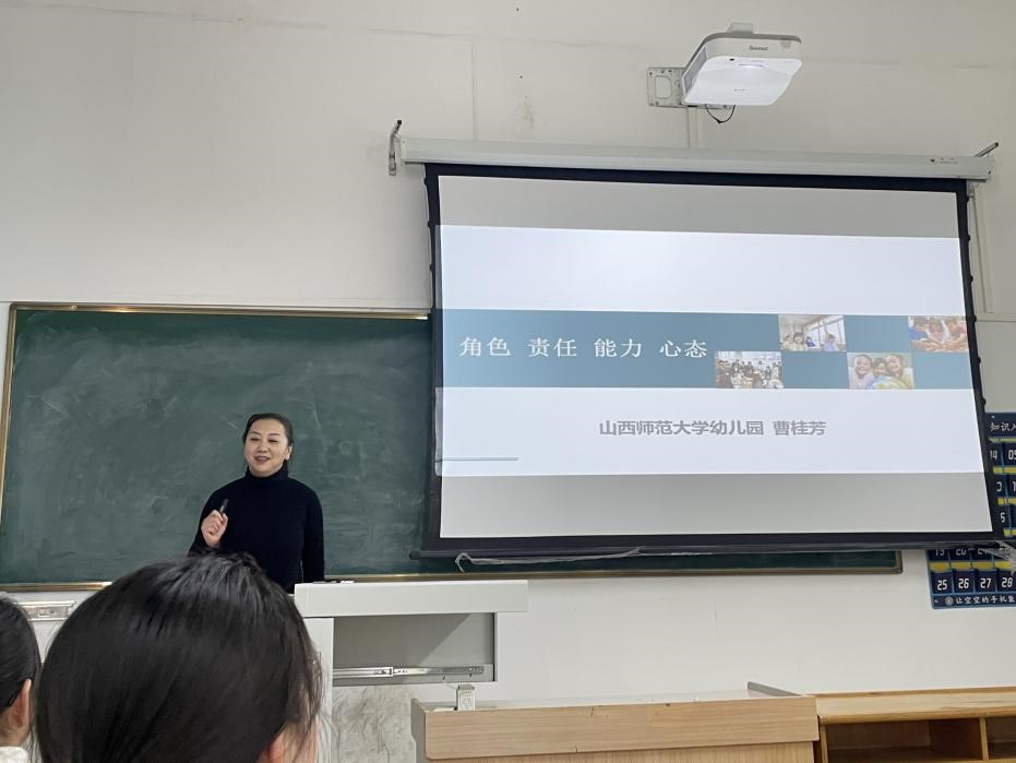 beat365vip官网登录入口幼儿园曹桂芳园长,以《角色.责任.能力.心态》为题,从真儿童、真课堂、真教师和真幼儿园四个方面,以自己的亲身经历和幼儿园实际发生的案例给同学们分享了幼儿园教师所应具备的能力以及如何成为一个优秀的幼儿园教师。