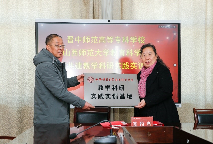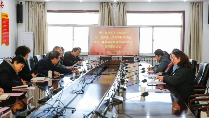2024年1月11日上午,beat365vip官网登录入口经理张潮、经理助理兼教育系主任李慧燕、学前教育系主任范瑞芝、教师王佳昕一行赴晋中师范高等专科学校,举行教学科研实践实训基地授牌签约仪式。