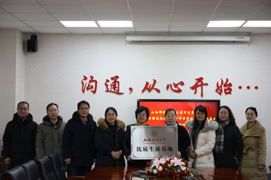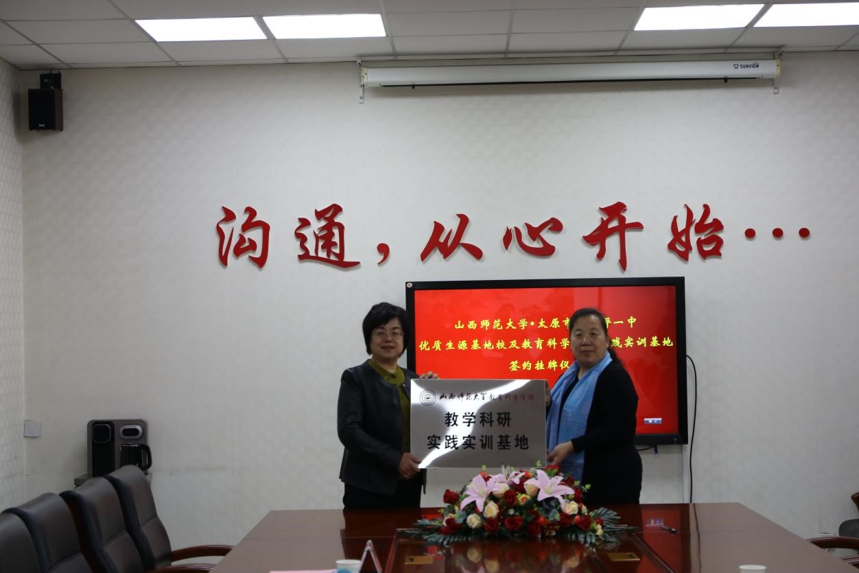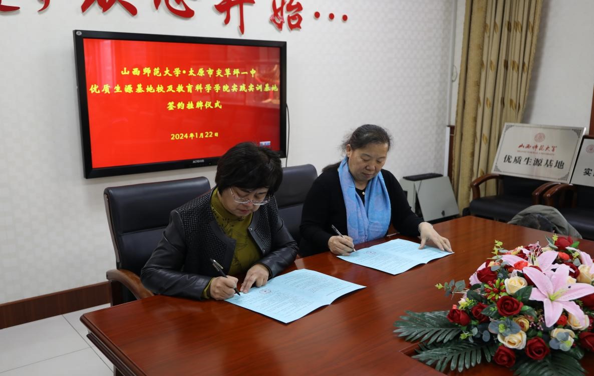 1月22日,beat365vip官网登录入口经理张潮、副经理郑晓俊、经理助理兼教育系系主任李慧燕、教育系教师王晓丹一行赴太原市尖草坪一中进行交流,并与太原市尖草坪一中顺利举行了“优质生源基地”与“教学科研实践实训基地”授牌及签约仪式。