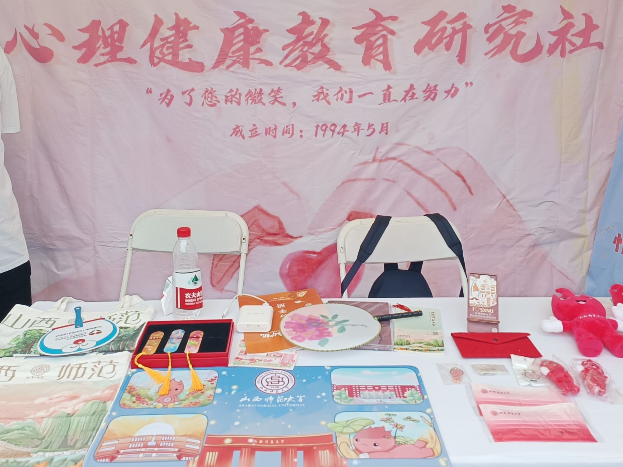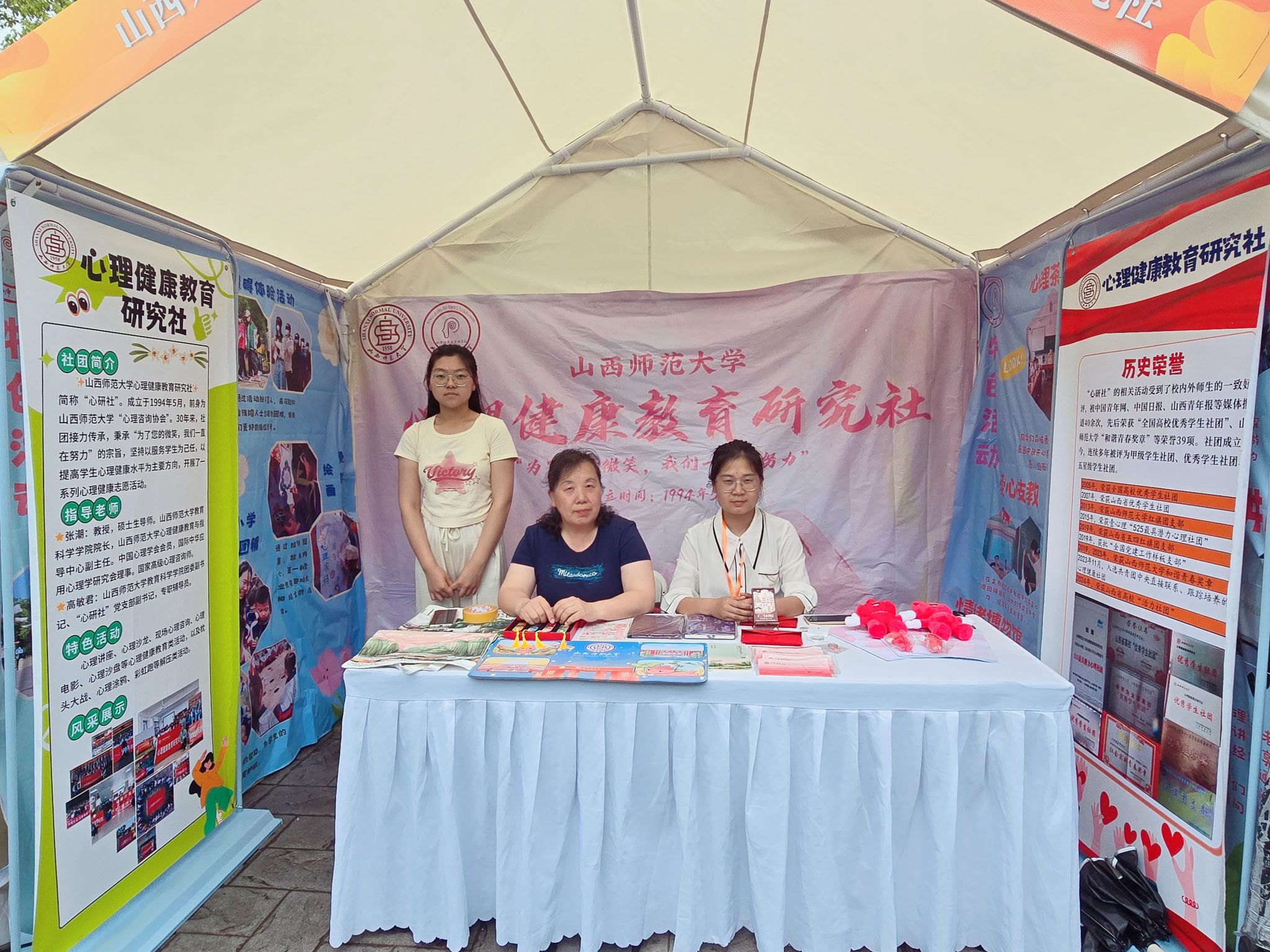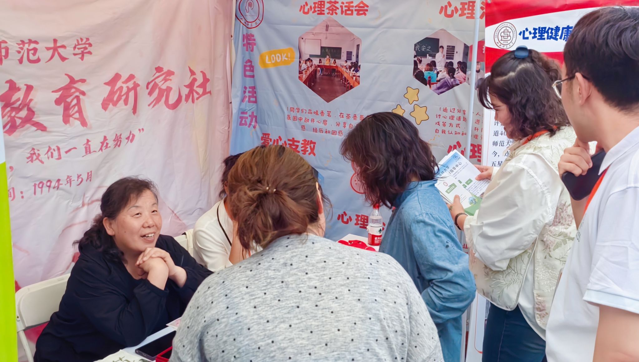 在高校心理社团“心理市集”暨优秀12355青少年服务台成果展上,公司心研社以宣传册、海报、文创产品等多种形式呈现了社团近年来开展的特色活动和工作成果,并与现场参展高校师生进行了互动交流。